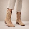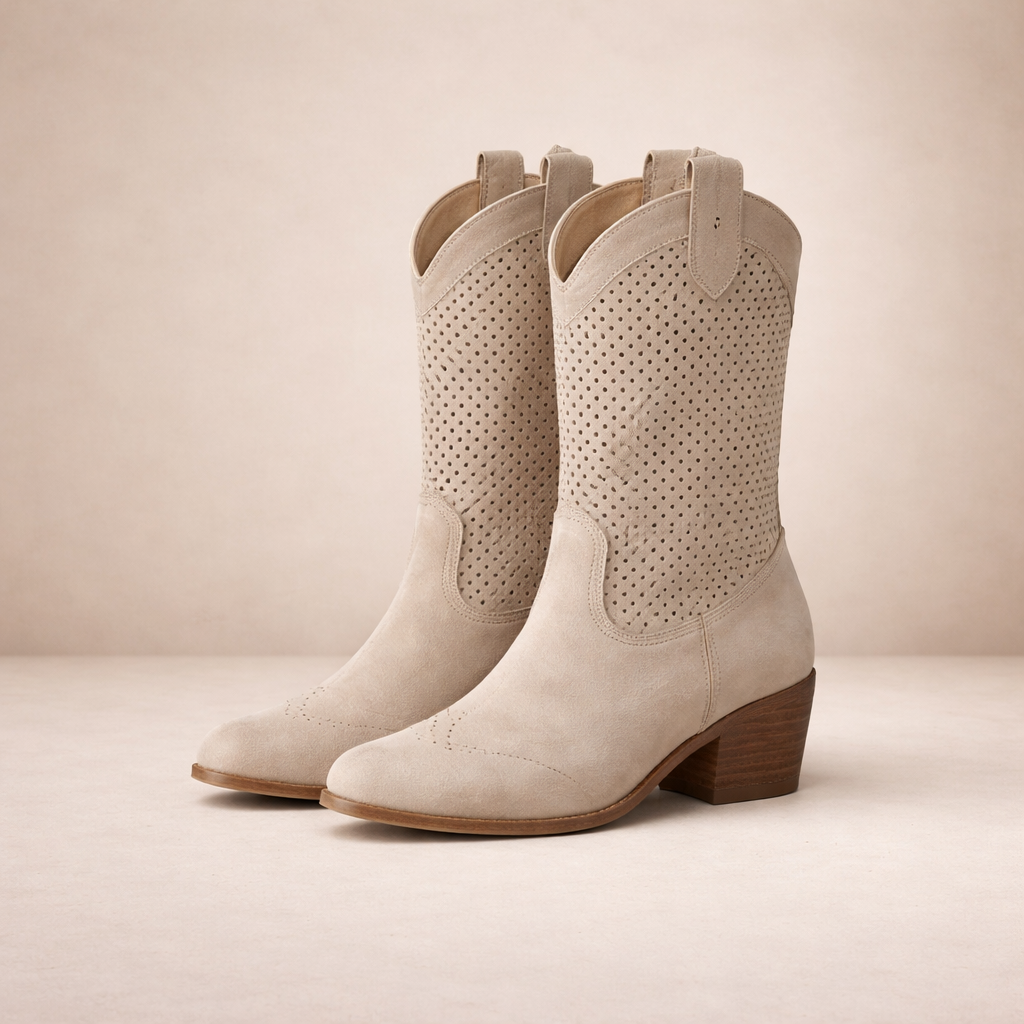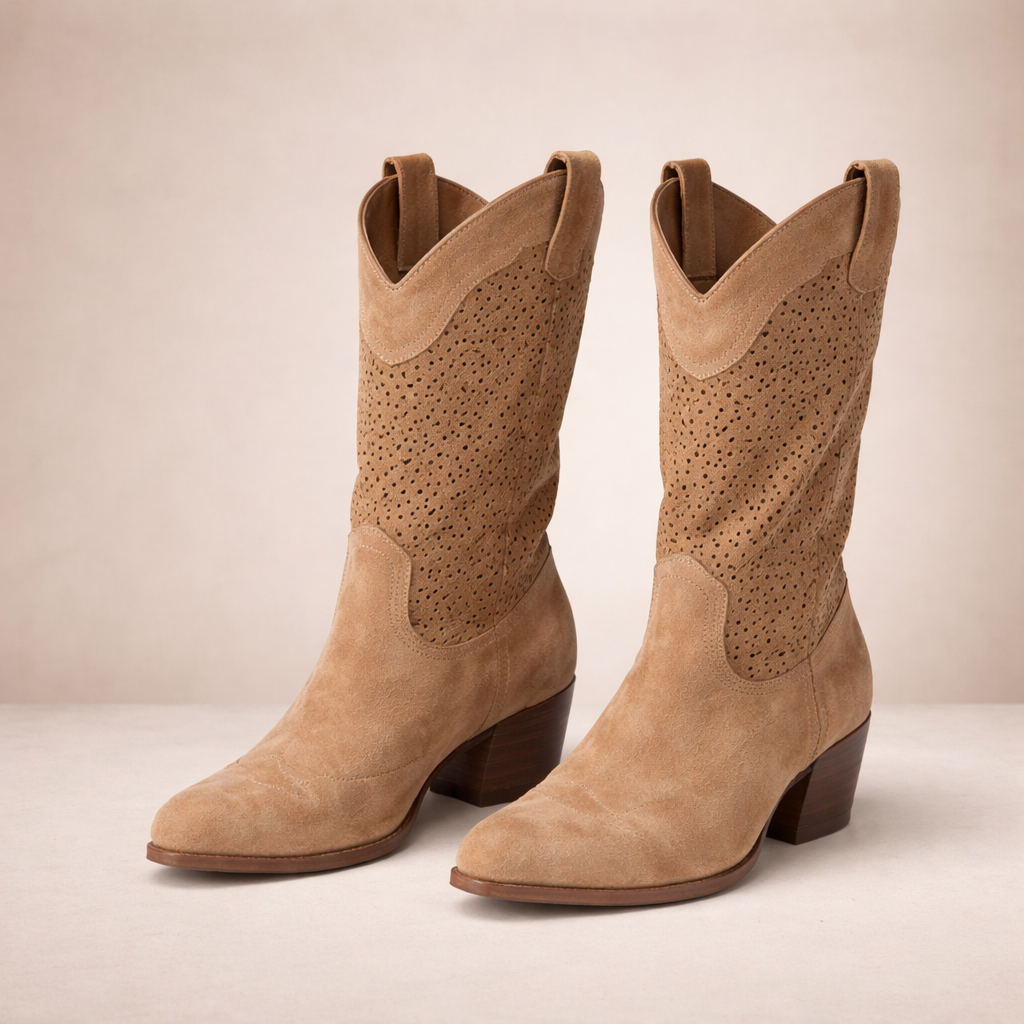 Design: Western-inspired silhouette with perforated upper panels for added texture and visual interest