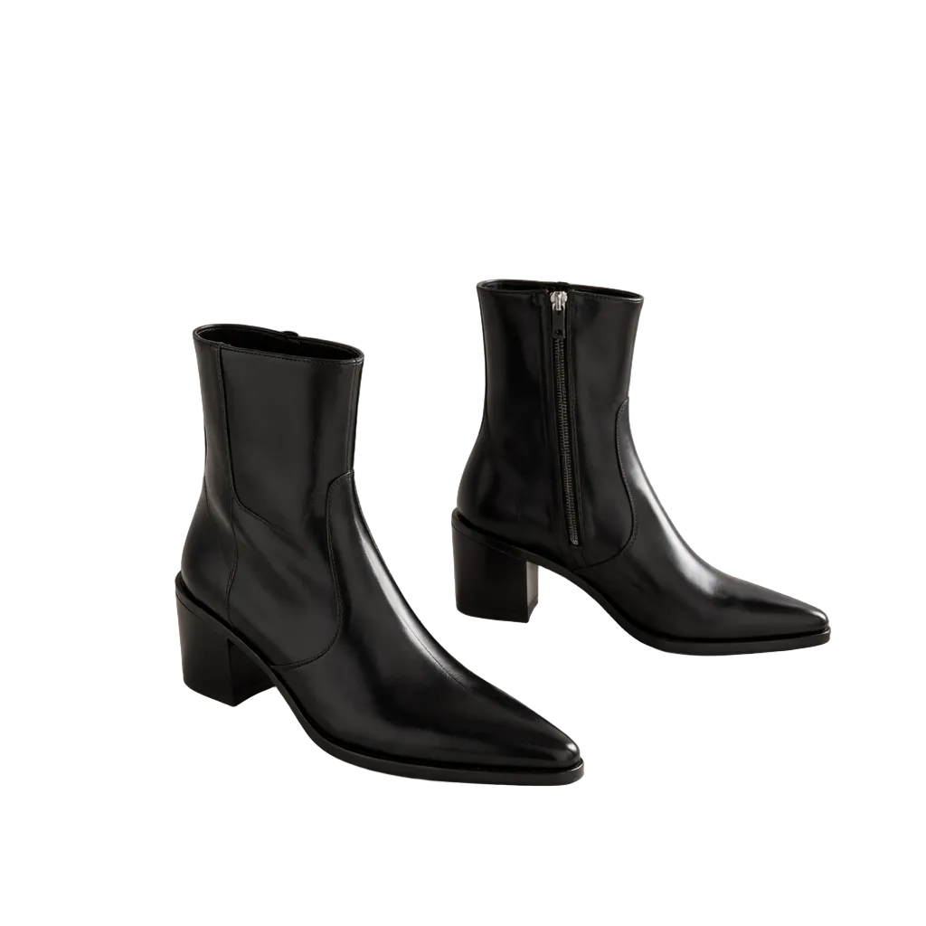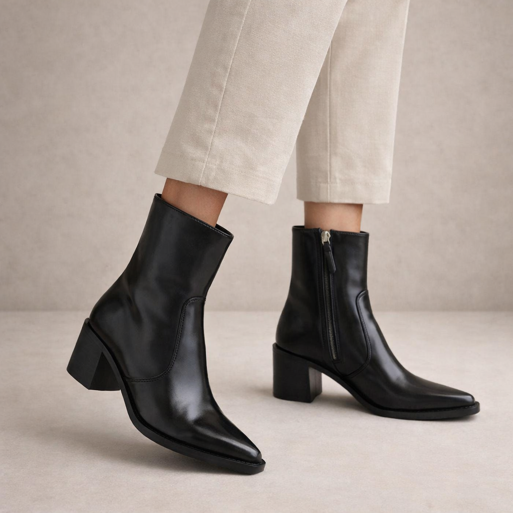 Design: Sleek ankle-high profile with a pointed toe and minimalist shape for a polished, contemporary look.