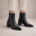 These elegant pointed-toe ankle boots bring a refined finish to everyday and occasion-ready outfits. Designed with a clean silhouette and a balanced heel, they offer timeless appeal that works seamlessly from workwear to evening looks.