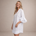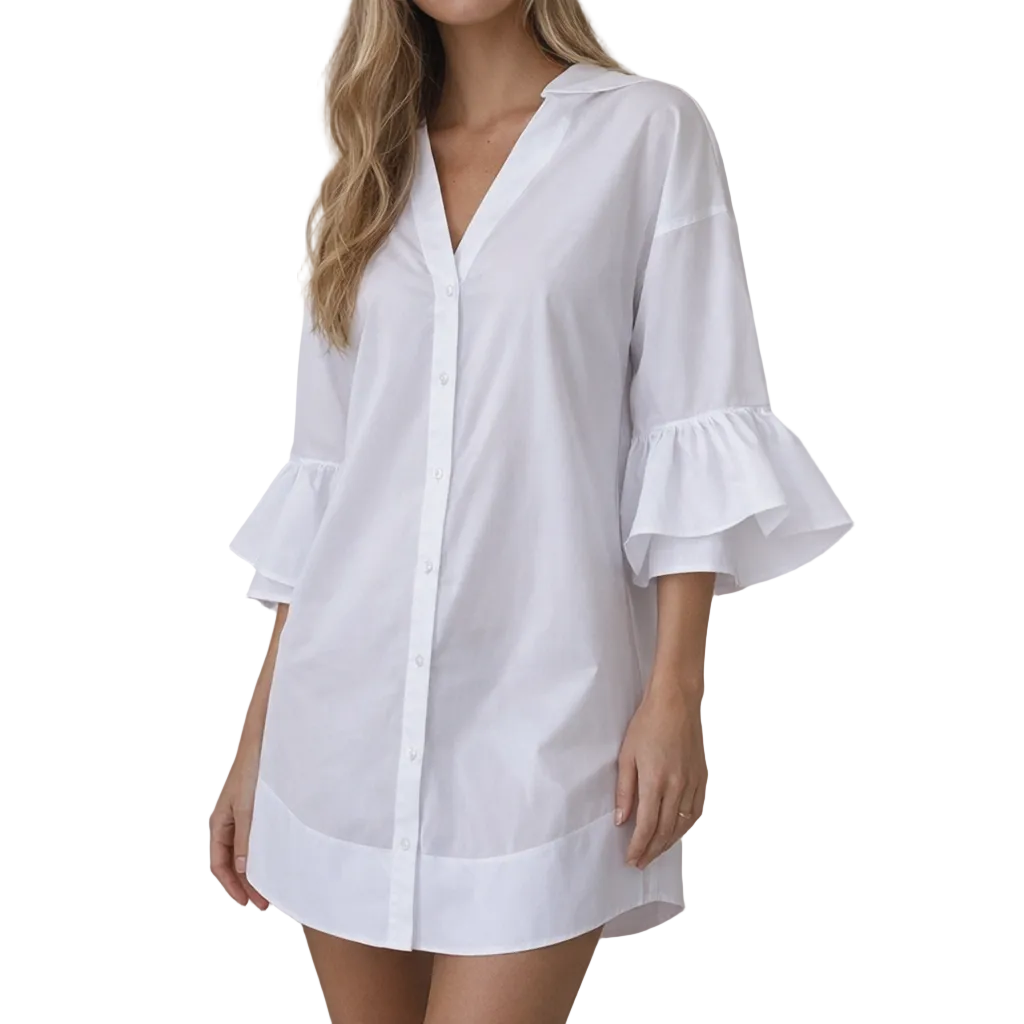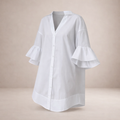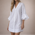 Key features of this Women’s Cotton V-Neck Mini Dress with Ruffle Sleeves