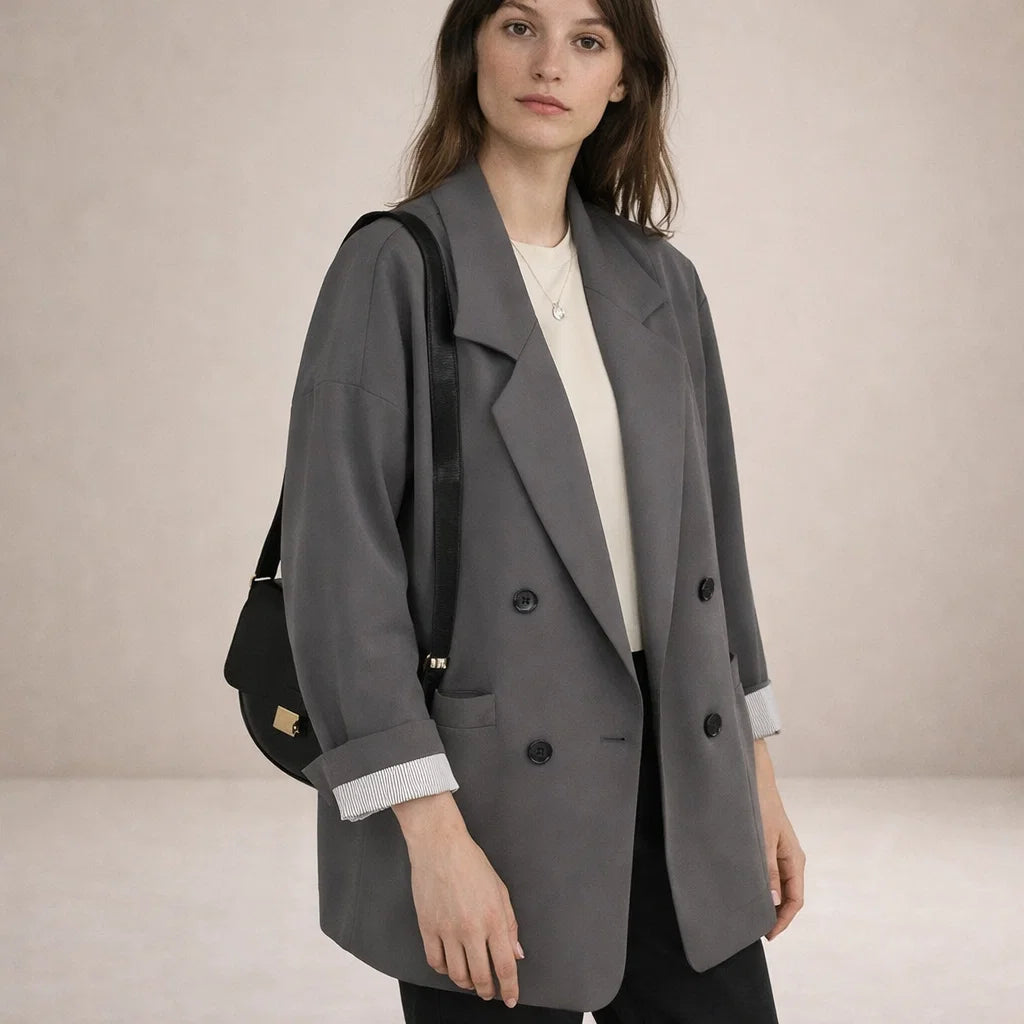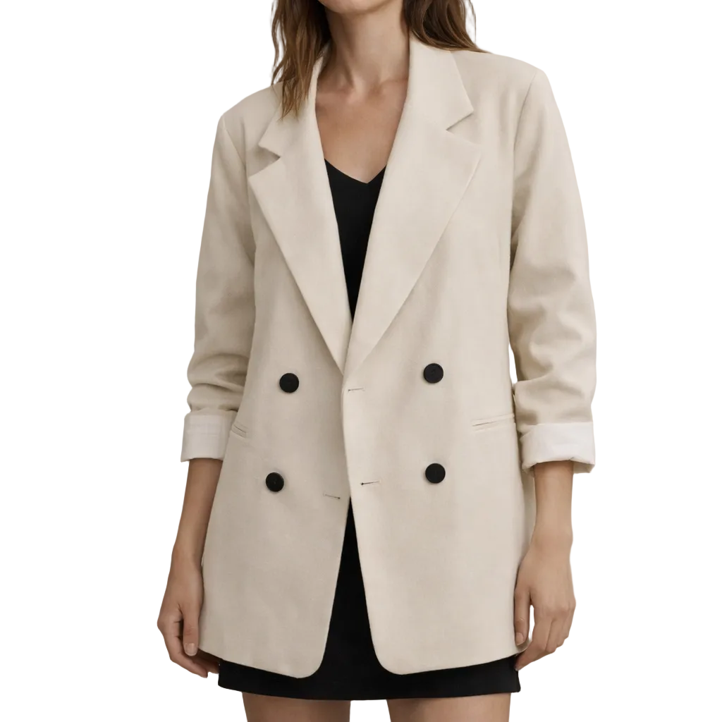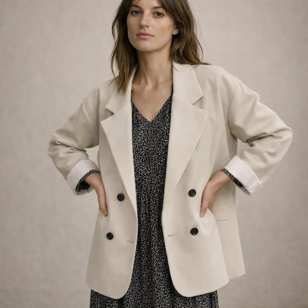 Timeless, polished and effortlessly versatile, this Women’s Relaxed Double-Breasted Blazer is a modern wardrobe essential. The clean tailoring and soft neutral tone create a refined silhouette, while the relaxed structure keeps it easy and wearable from day to evening.