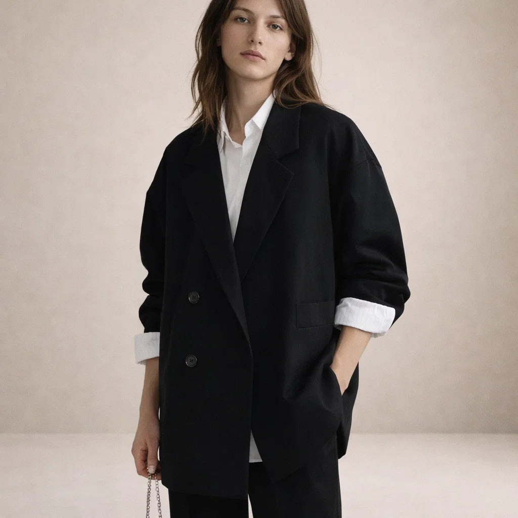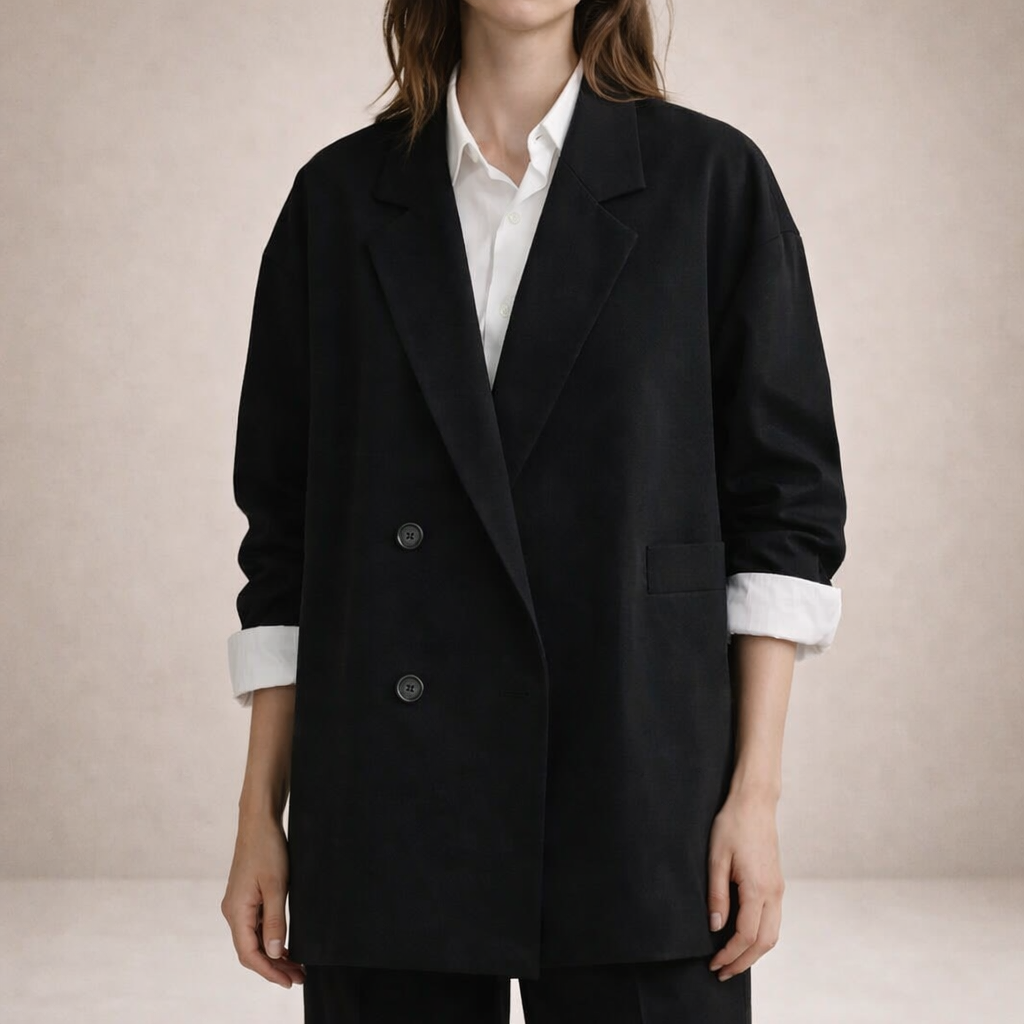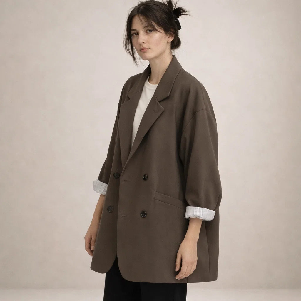 Key features of this Women’s Relaxed Double-Breasted Blazer