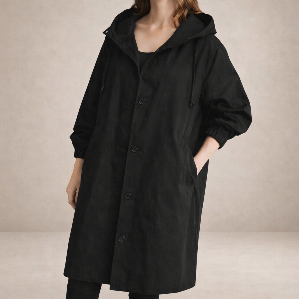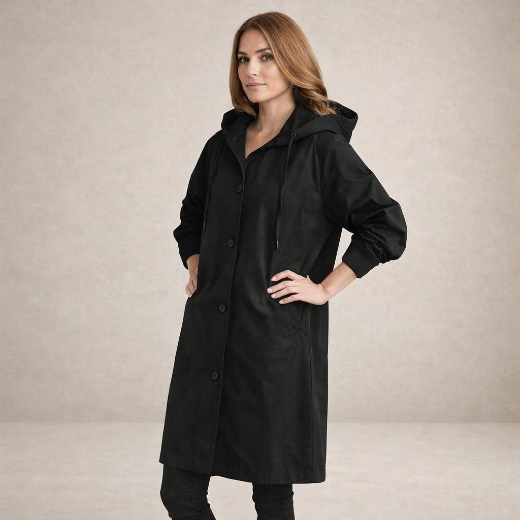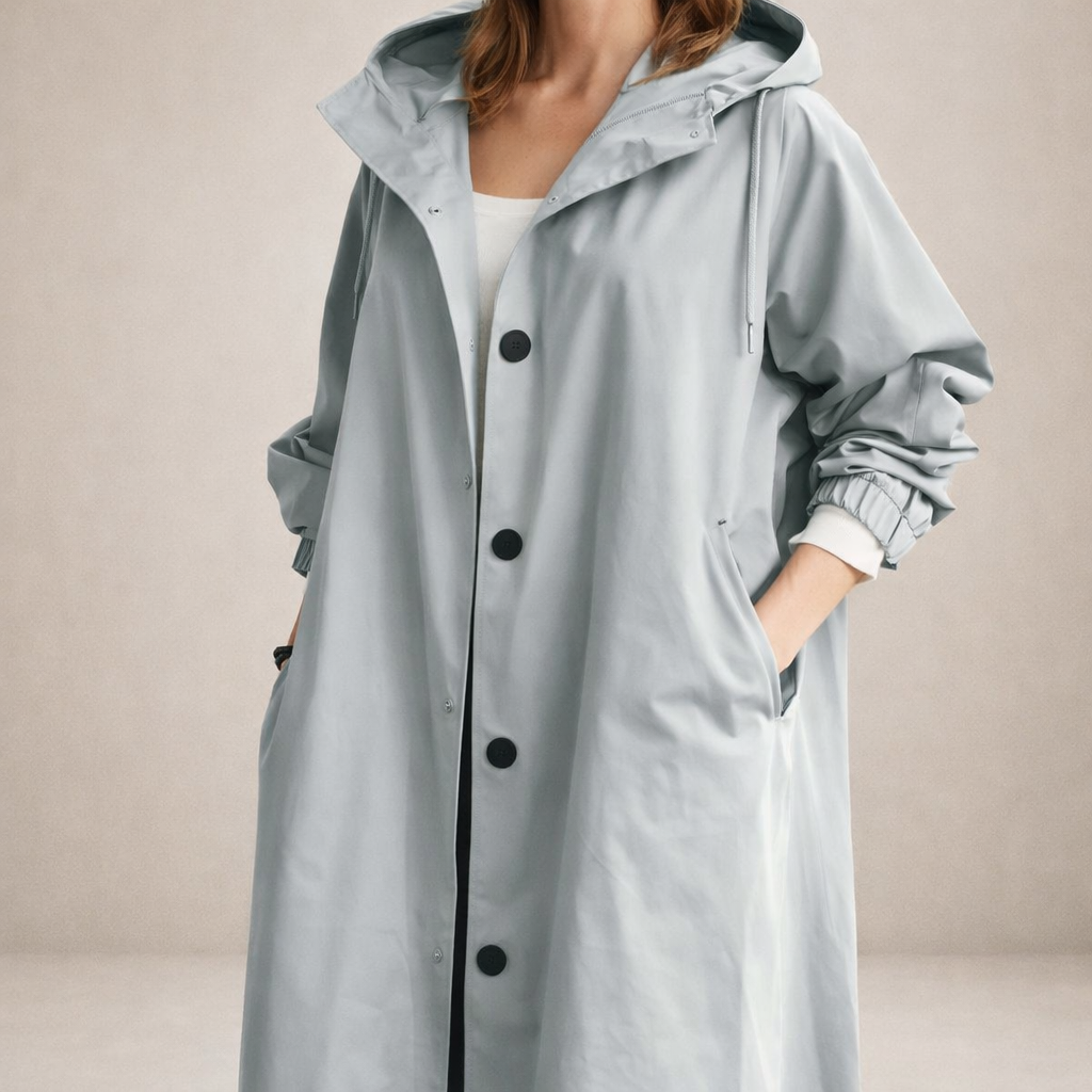 Details: Functional hood, adjustable cuffs and discreet side pockets that enhance everyday wearability and comfort.