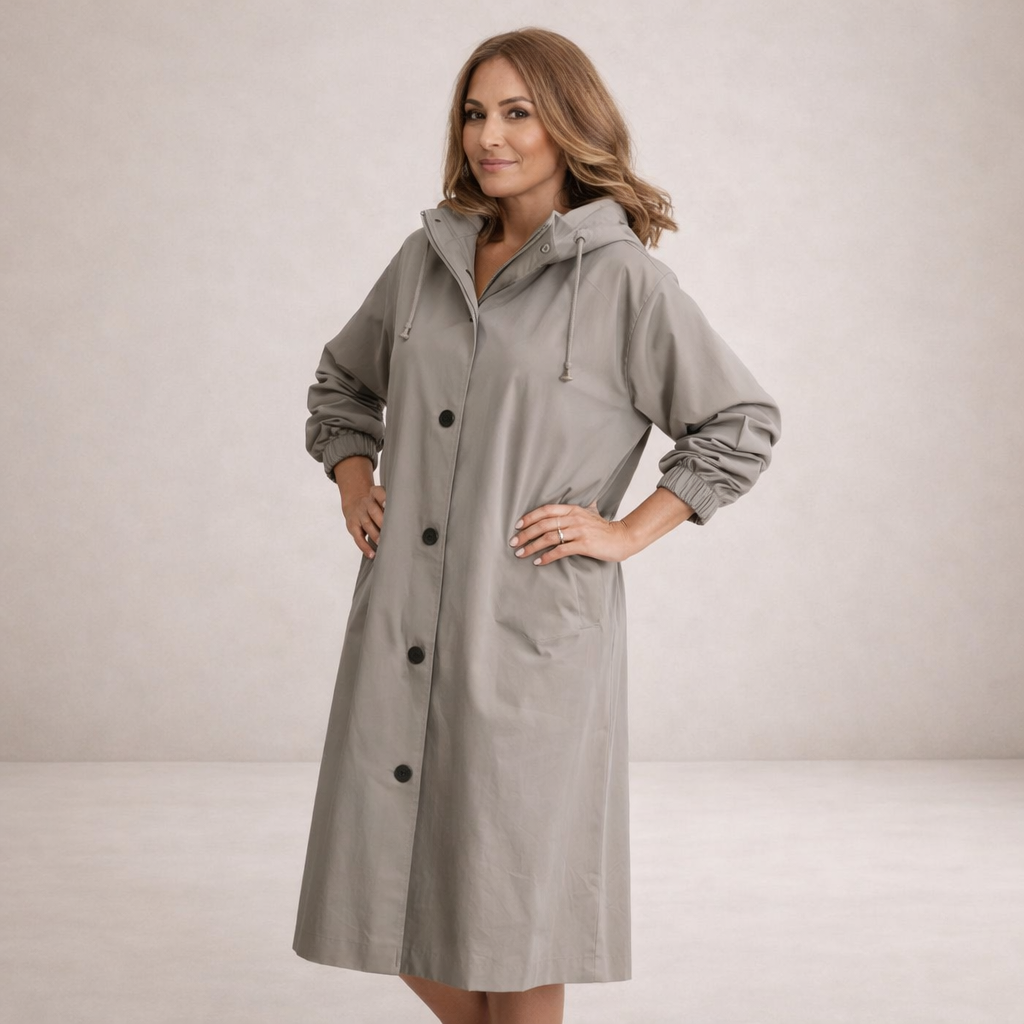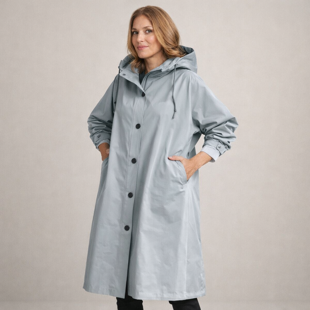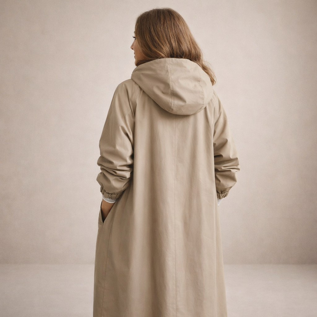 Details: Functional hood, adjustable cuffs and discreet side pockets that enhance everyday wearability and comfort.