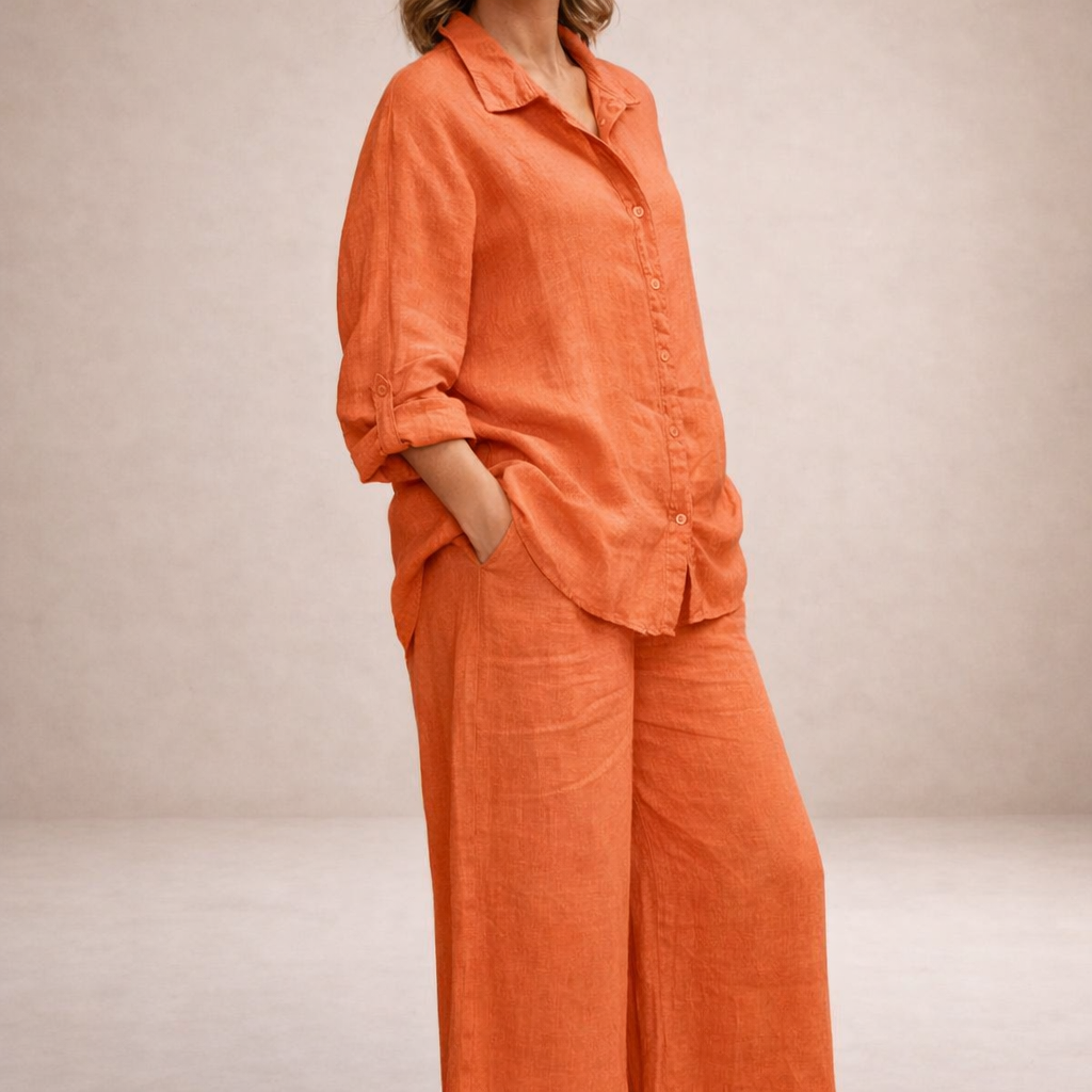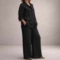 This women’s elegant two-piece set offers a relaxed yet refined look, perfect for effortless day-to-evening wear. Clean lines and a fluid silhouette make it ideal for casual sophistication, travel days, or understated occasions.