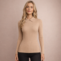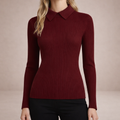 Key features of this Women’s Ribbed Long Sleeve Knit Top with Collar