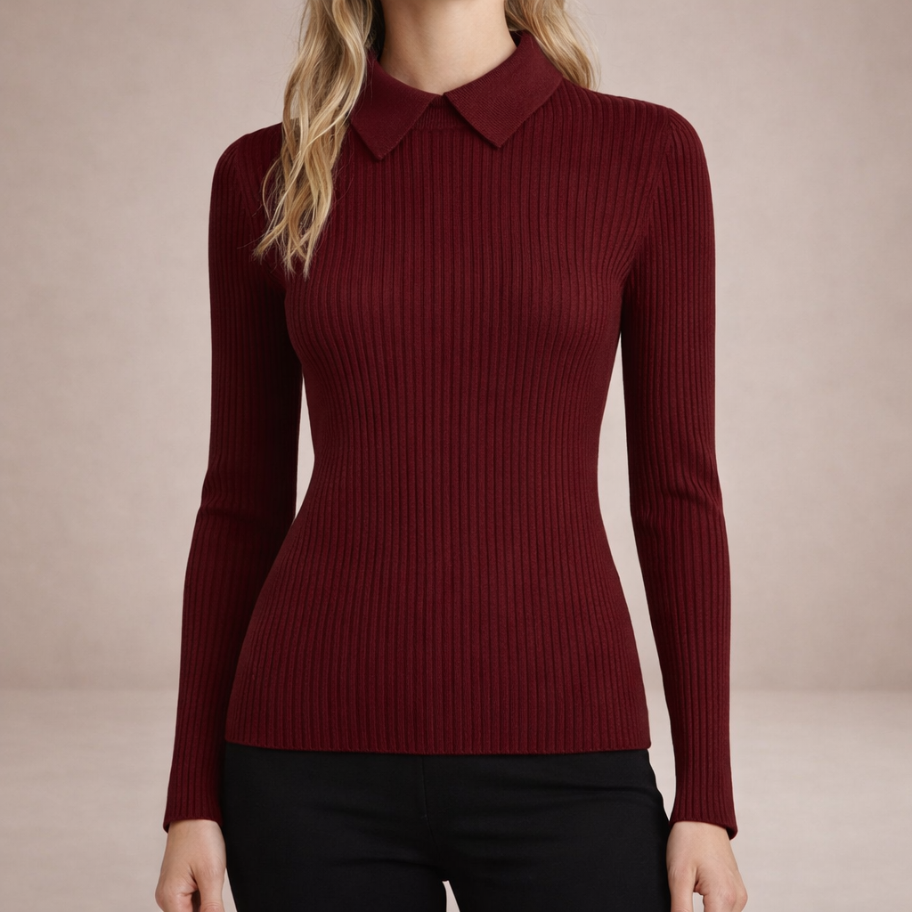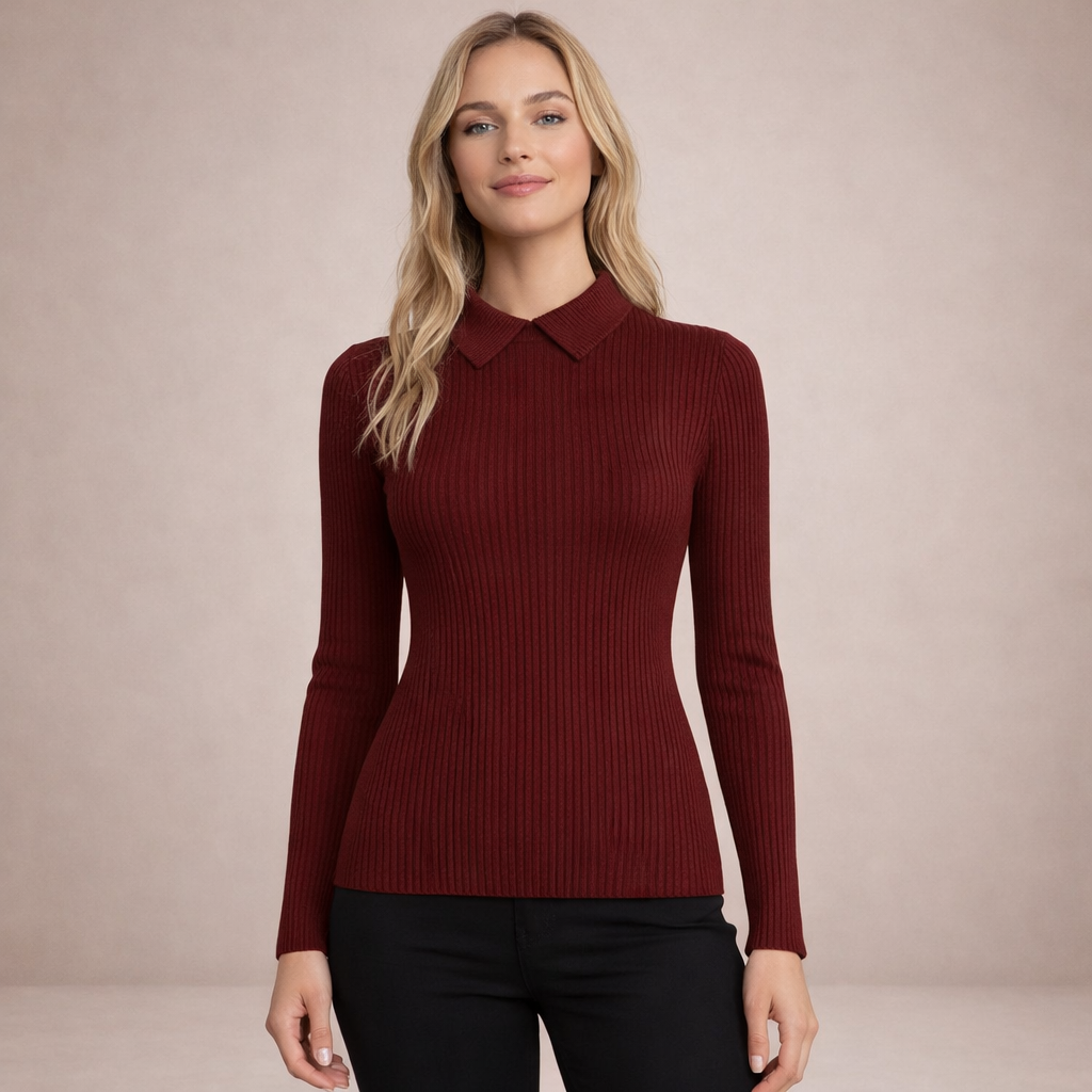 Women’s Ribbed Knit Jumper with Collar