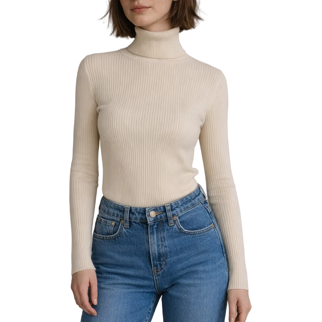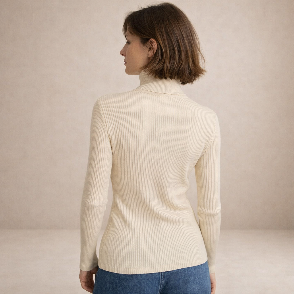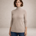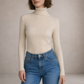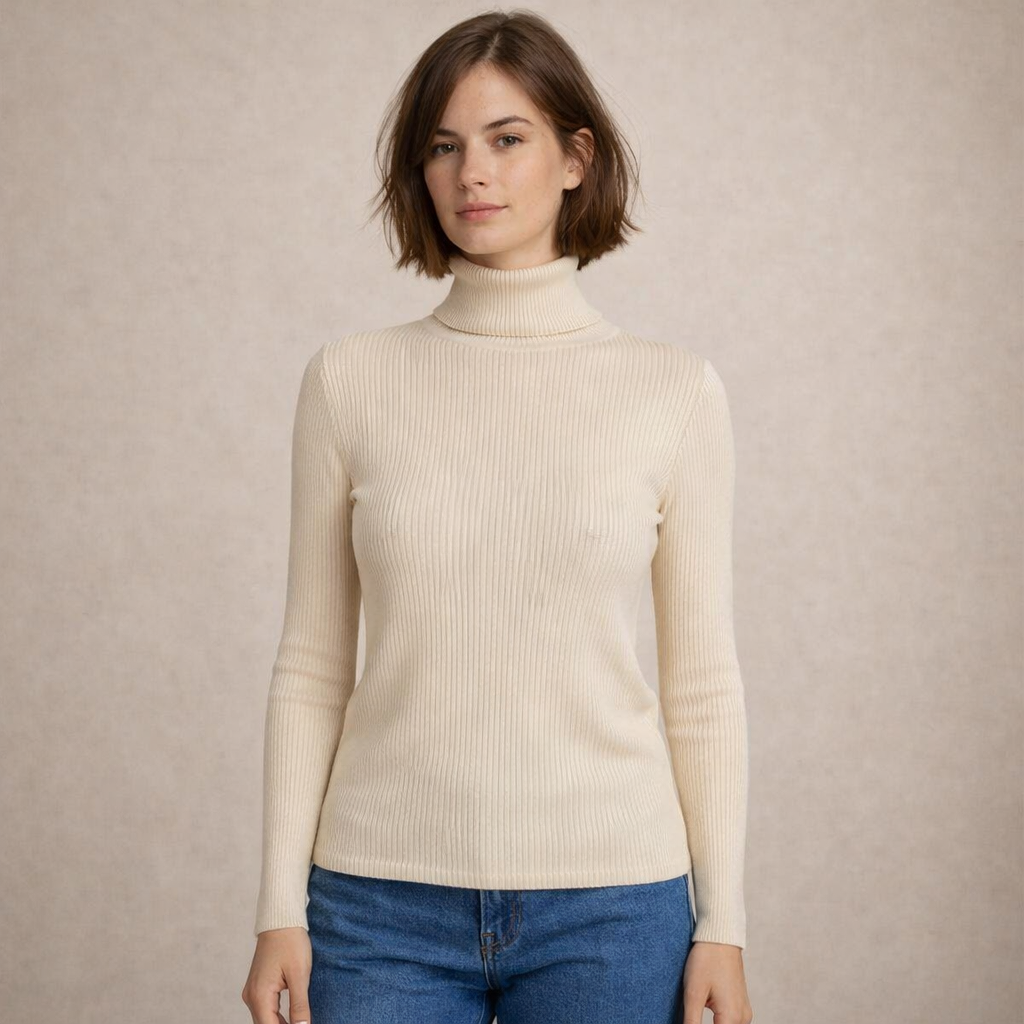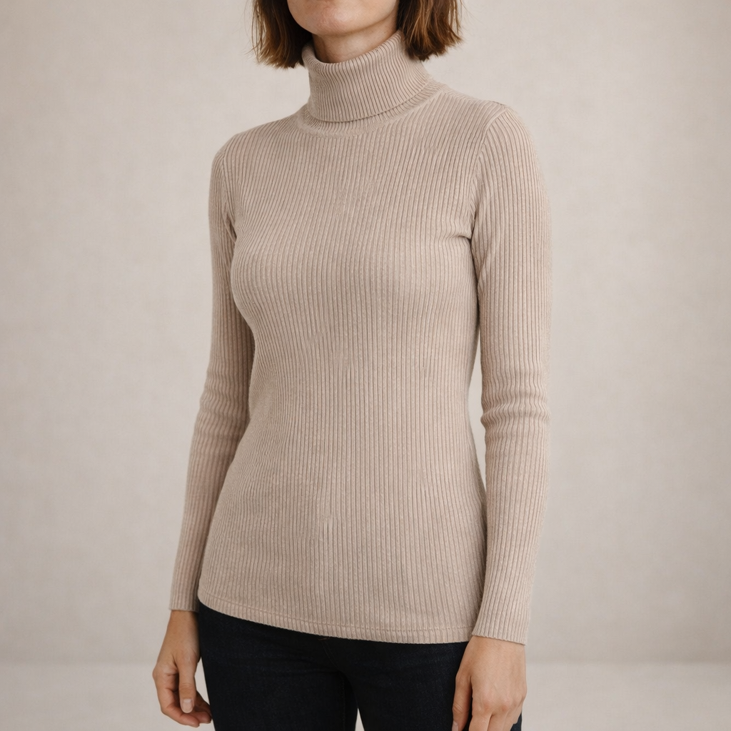 Refined and effortlessly versatile, this ribbed roll neck top is a timeless staple for modern wardrobes. The clean silhouette and soft neutral tone make it ideal for layering or wearing on its own throughout the seasons. Perfect for work, weekend outings or understated evening looks, it delivers elegance with everyday comfort.