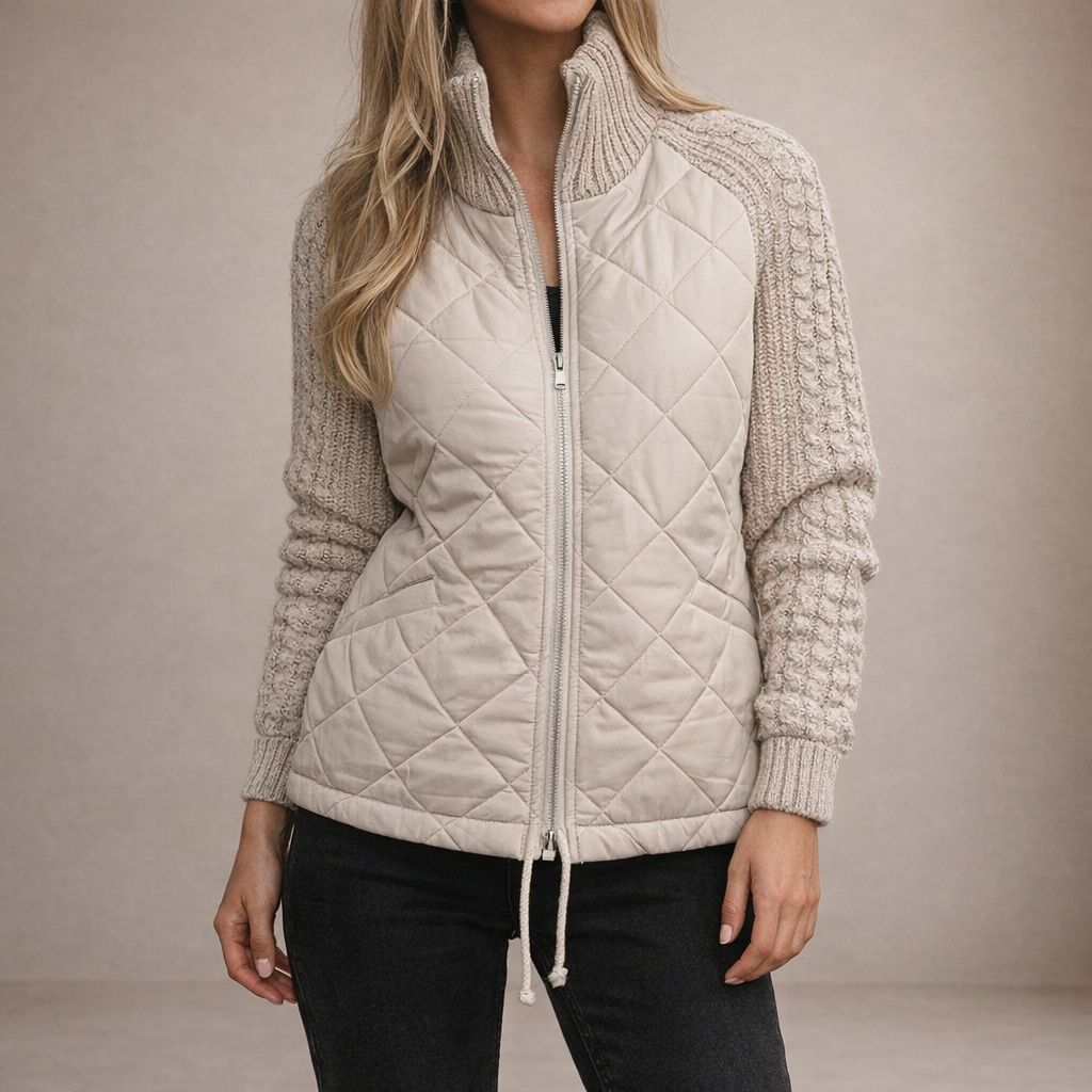 Design: Hybrid construction with a quilted front and knitted sleeves for balanced warmth and comfort