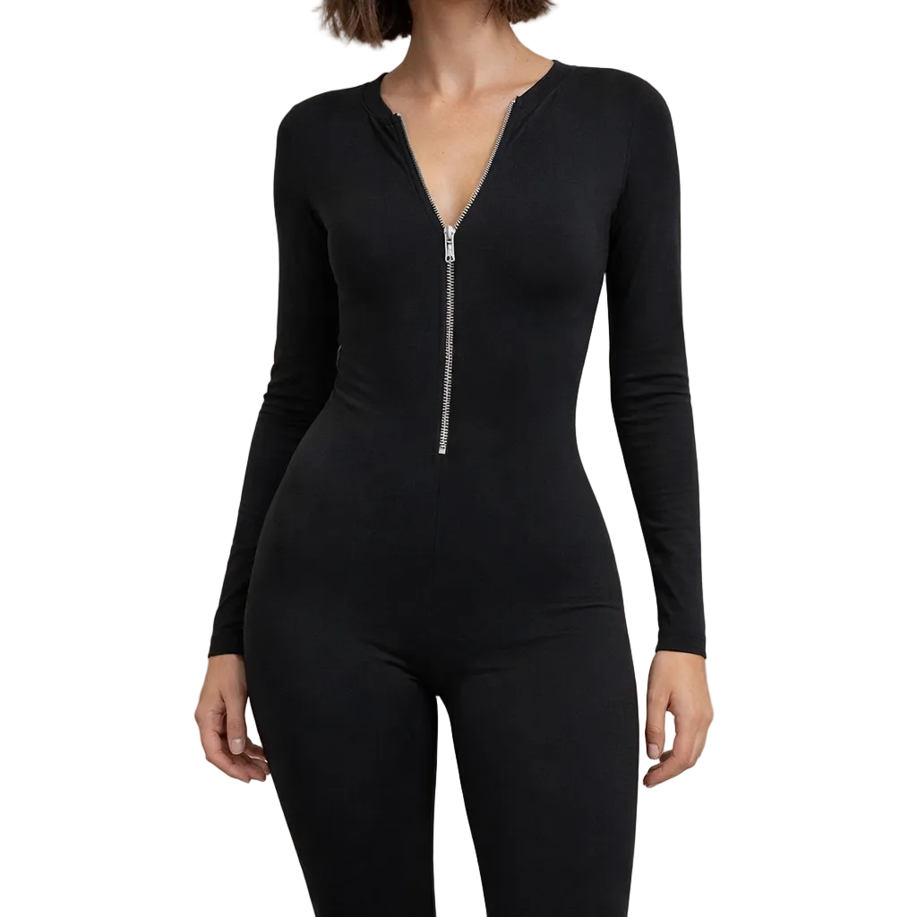 Key features of this Women’s Zip-Front Bodycon Jumpsuit