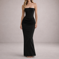 This women’s strapless evening maxi dress offers a sleek, sculpted silhouette with an understated sense of elegance. Designed for formal occasions, evening events or special celebrations, it delivers a refined look that feels modern, confident and timeless.