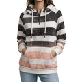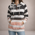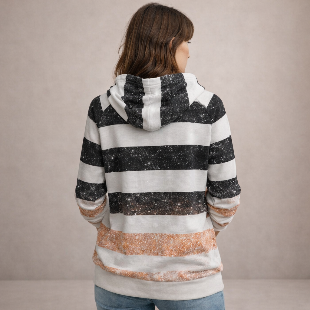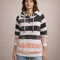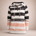 Casual and comfortable with a modern twist, this women’s striped hooded sweatshirt is perfect for relaxed everyday wear. The soft neutral tones are elevated by subtle textured stripes, creating a laid-back look with visual interest. Ideal for layering over denim or joggers, it brings effortless style to cooler days.