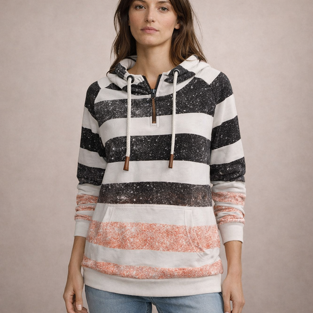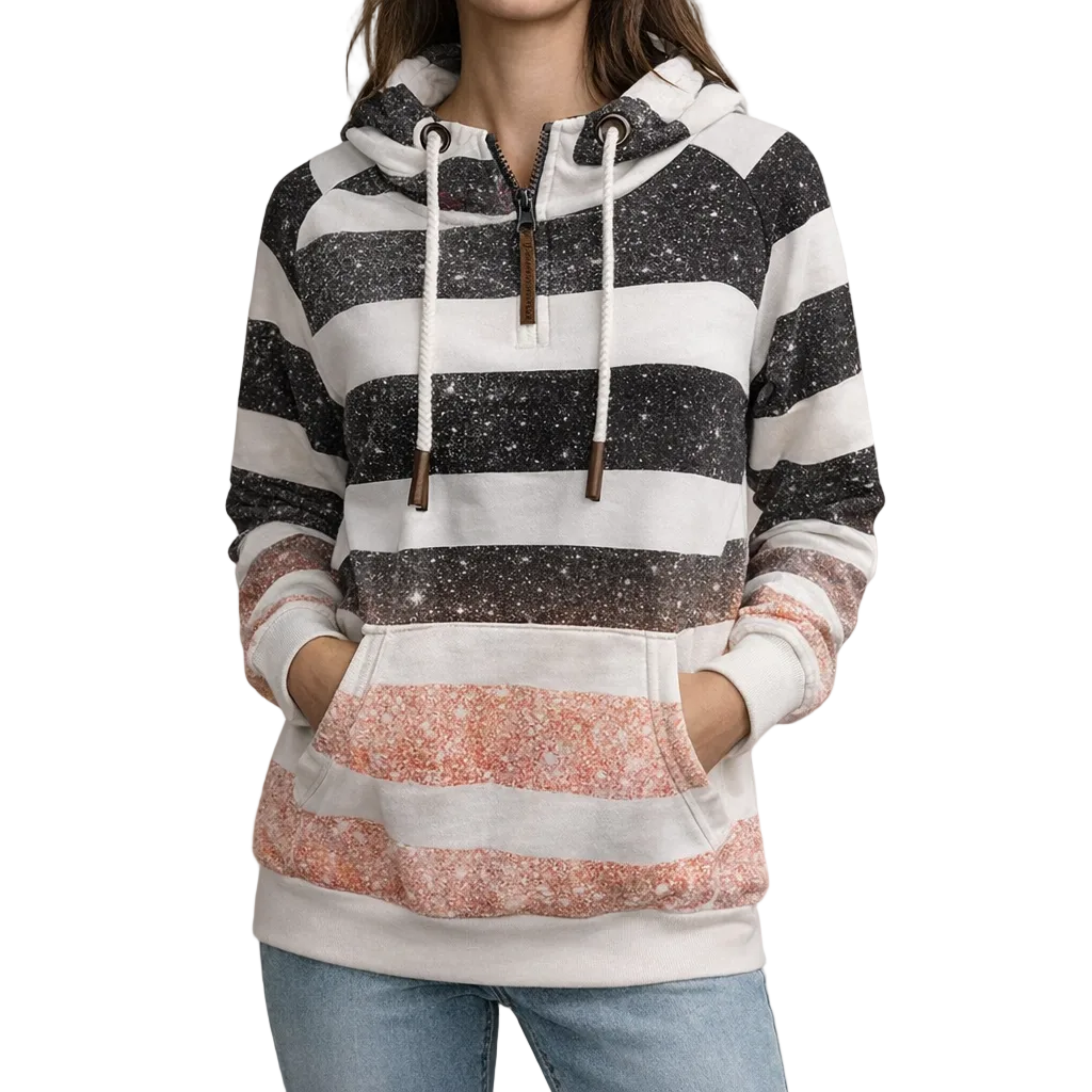 Women’s Striped Half-Zip Hooded Sweatshirt