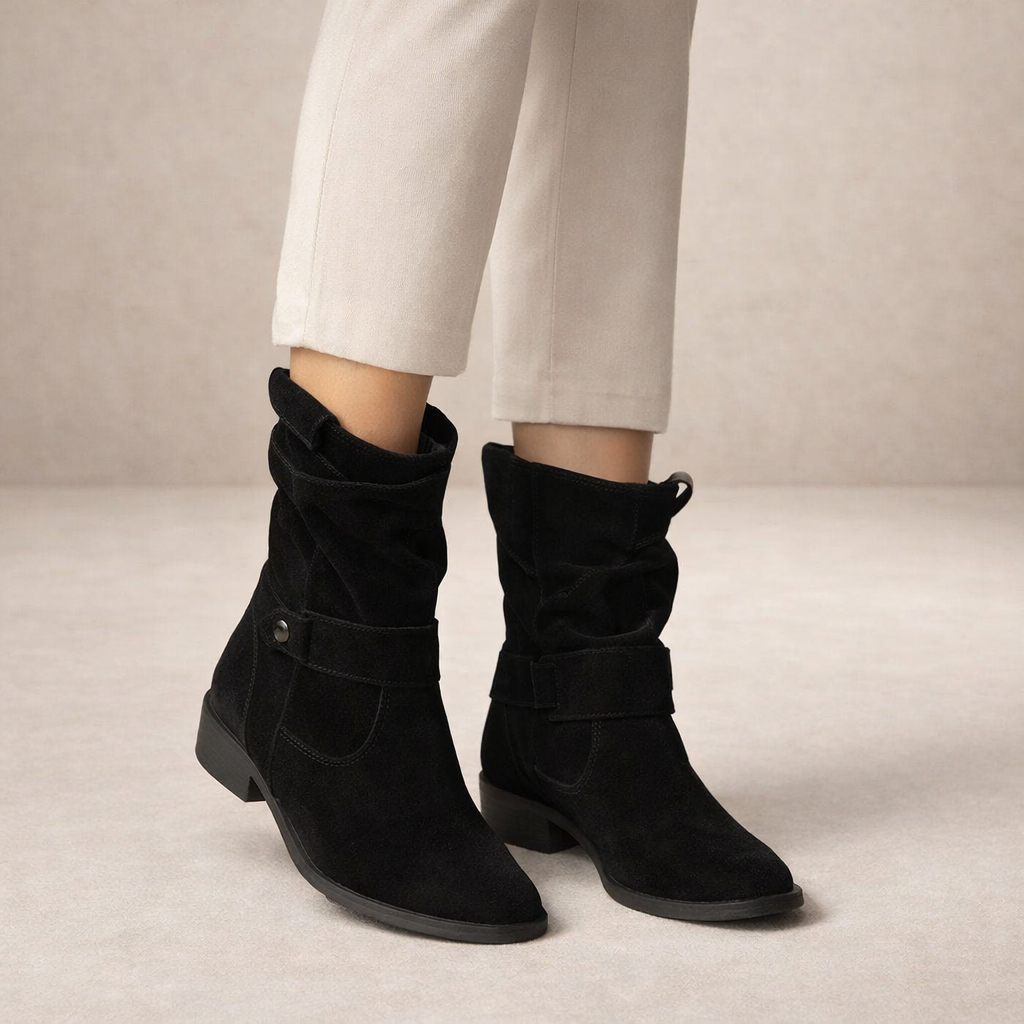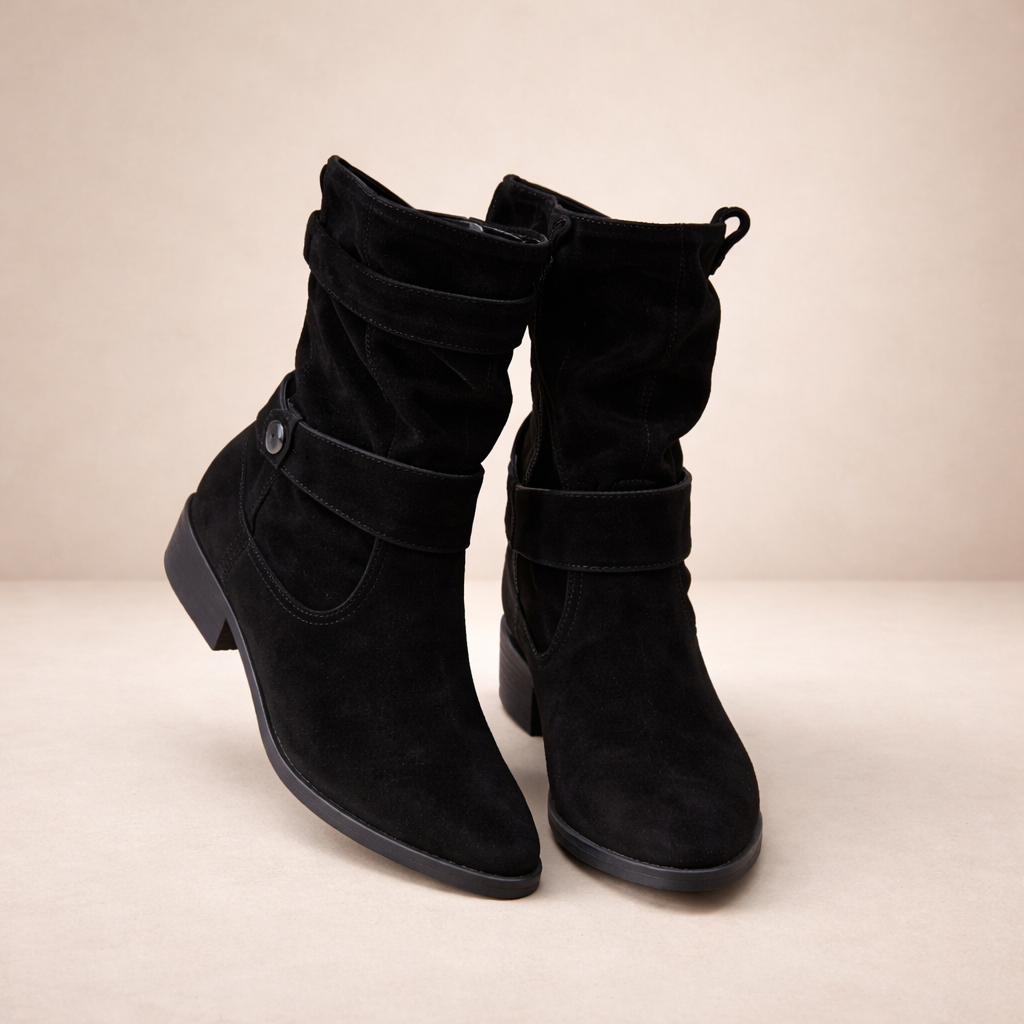 Key features of these Women’s Suede-Effect Ankle Boots with Strap Detail