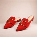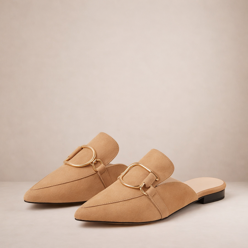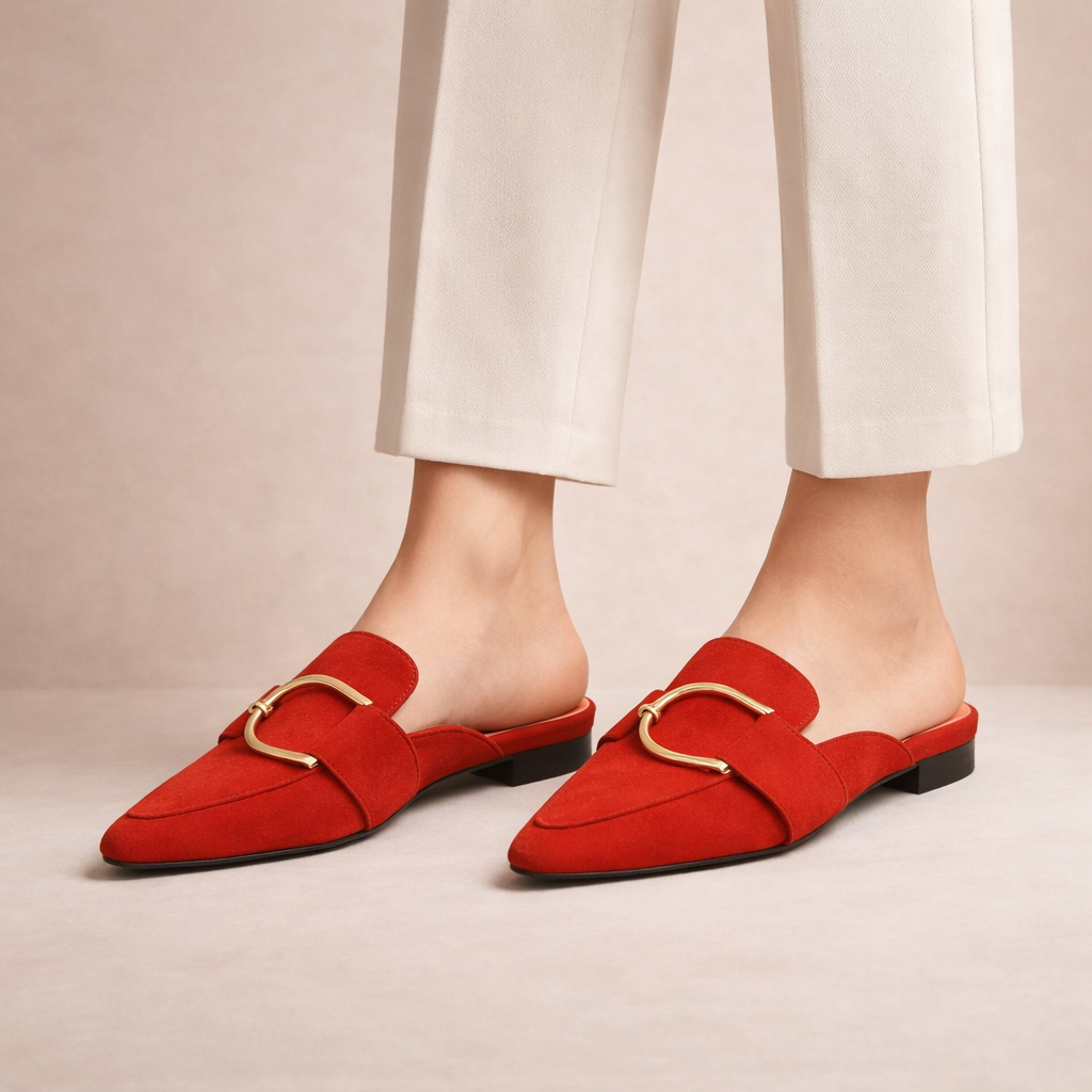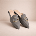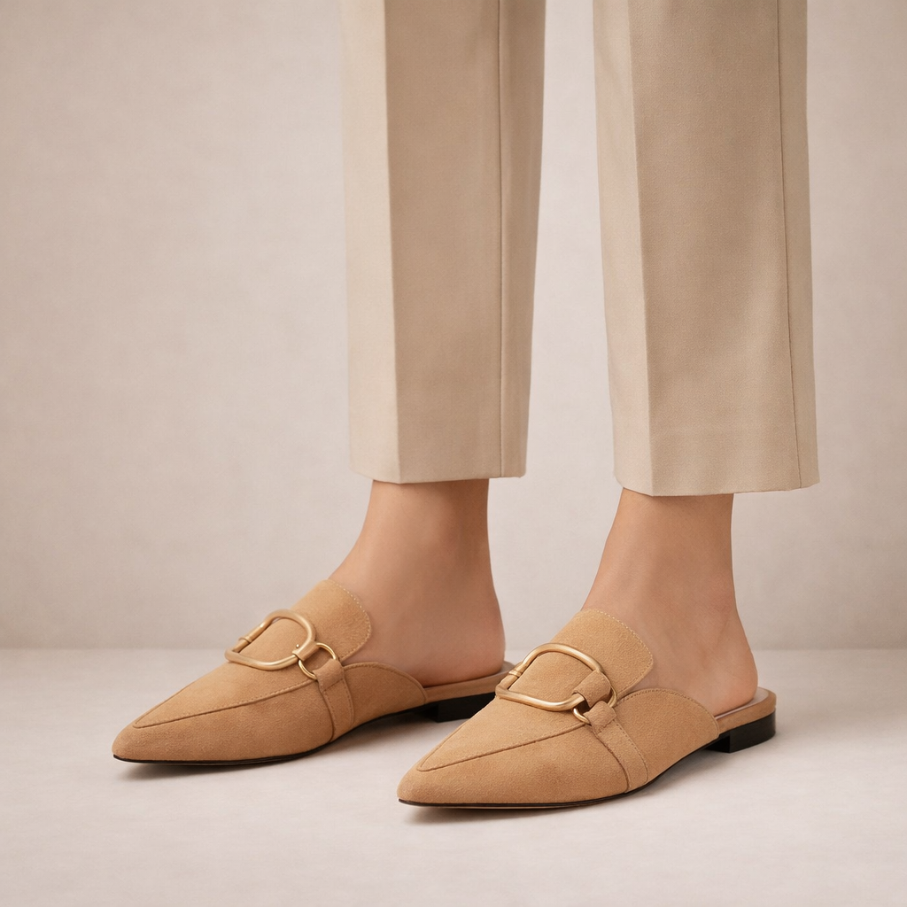 Women’s Suede Pointed-Toe Mule Loafers with Buckle Detail