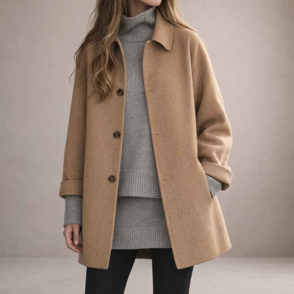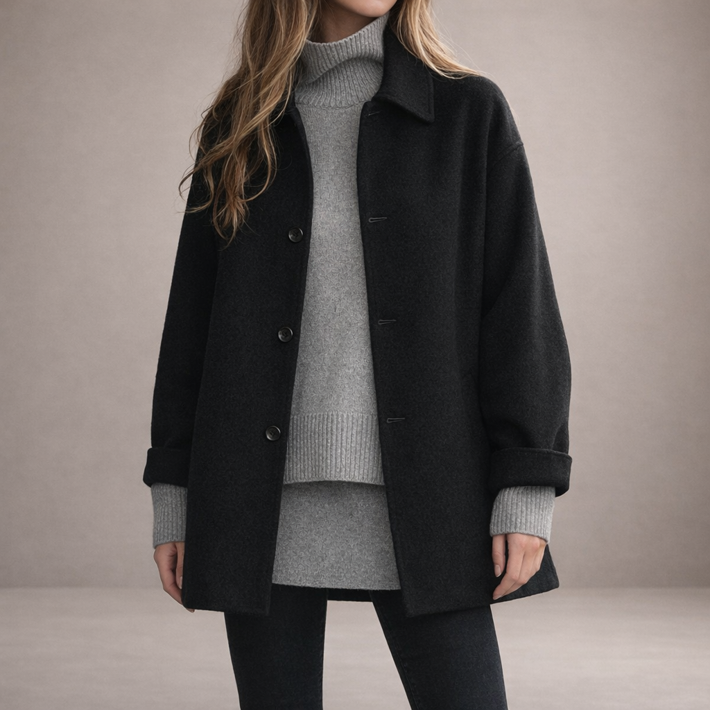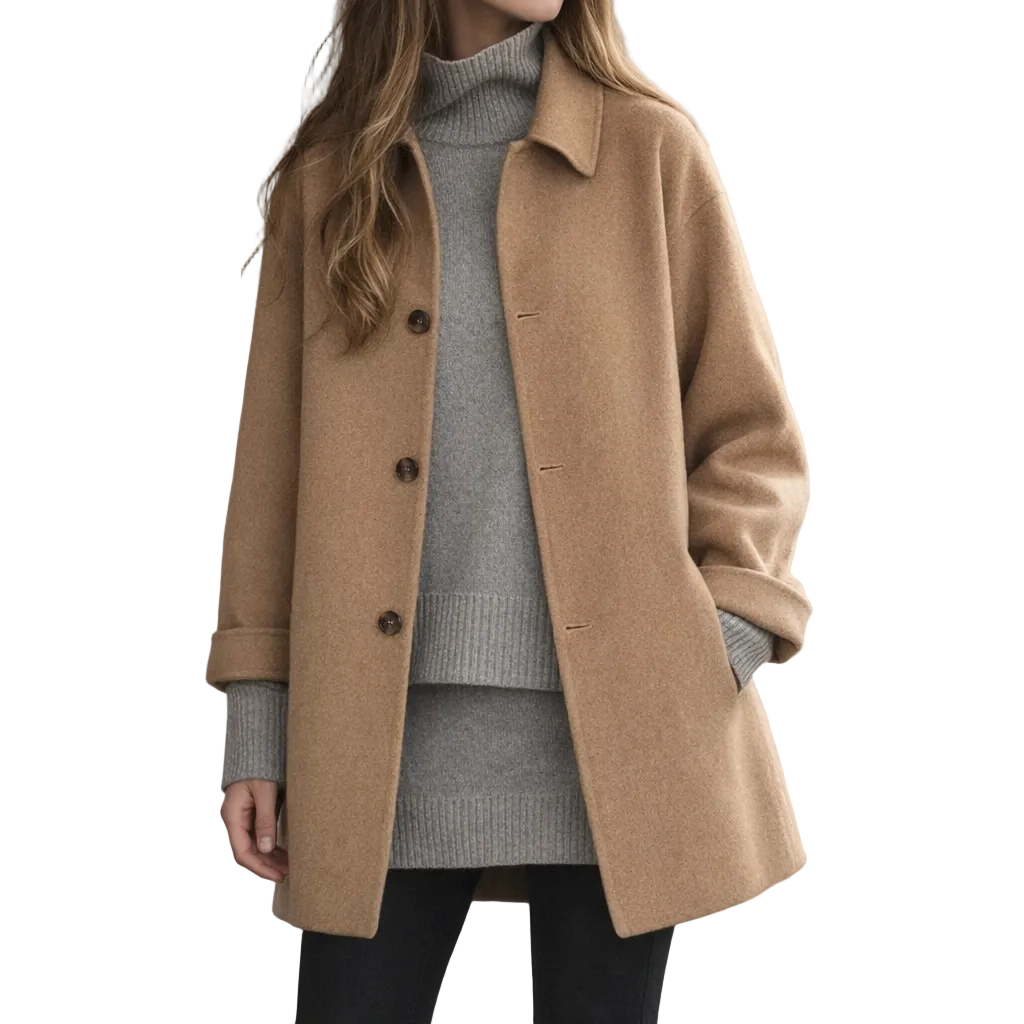 Design: Clean, minimalist silhouette with classic trench-inspired lines for a refined appearance