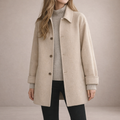 This elegant women’s trench-style coat brings timeless sophistication to everyday dressing. Designed for cooler days, it offers a polished yet relaxed look that transitions effortlessly from workwear to weekend styling.