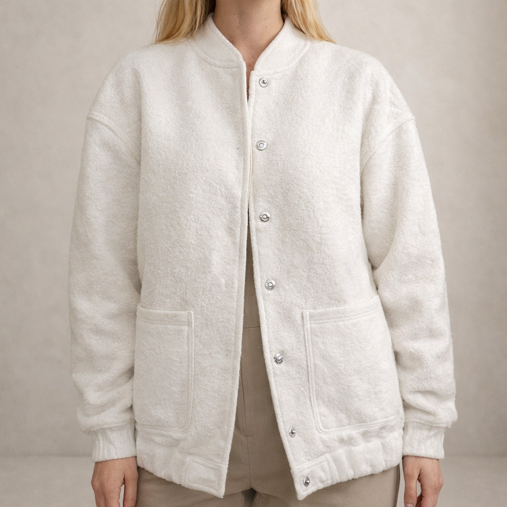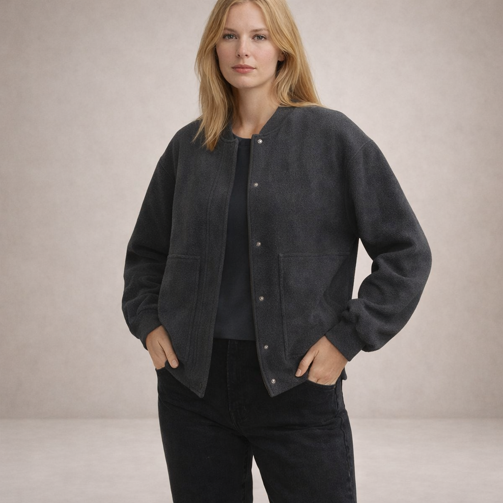 Clean, modern and effortlessly versatile, this Women’s Lightweight Bomber Jacket is a refined take on a casual classic. The soft texture and minimalist silhouette make it an ideal layering piece for transitional seasons and relaxed everyday styling.
