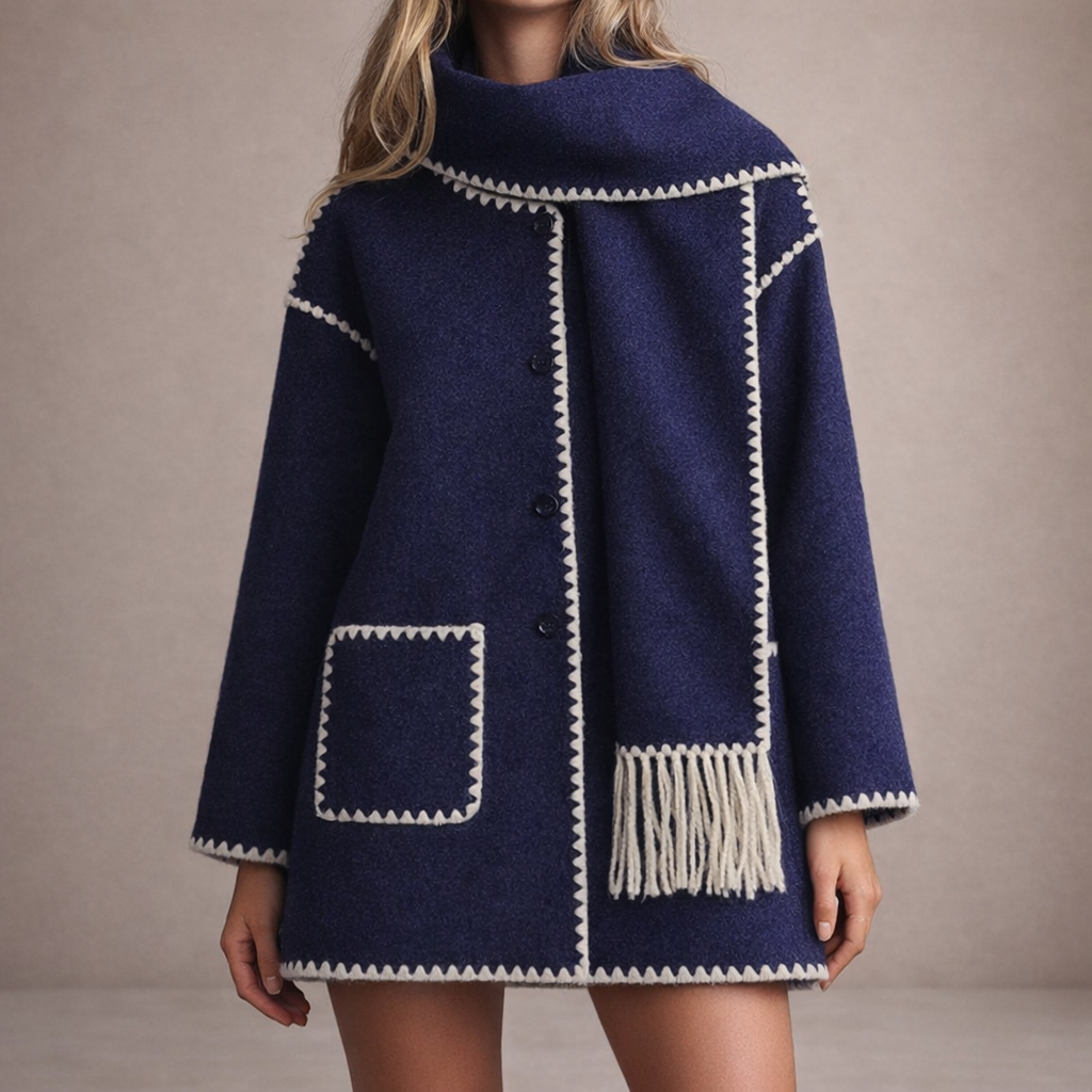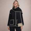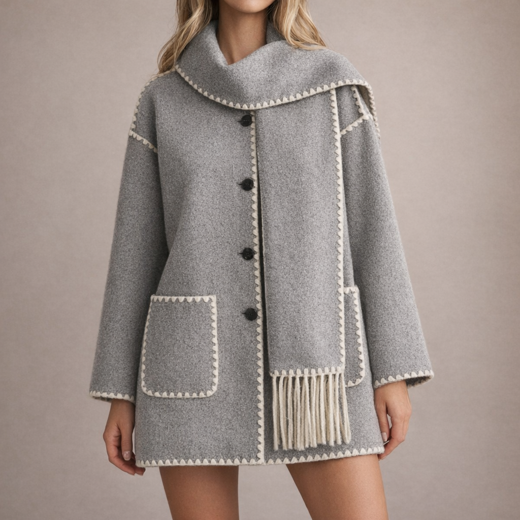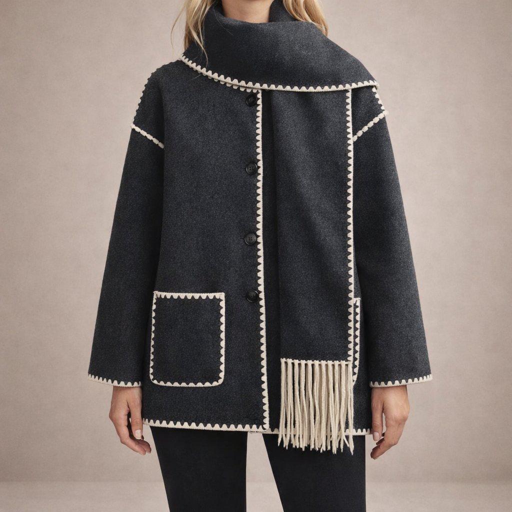 Women’s Textured Wool-Blend Jacket with Fringe Scarf Detail