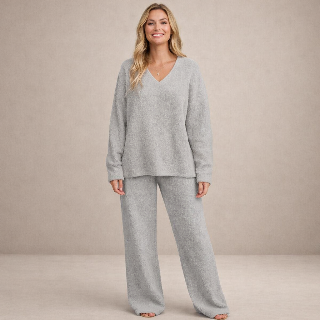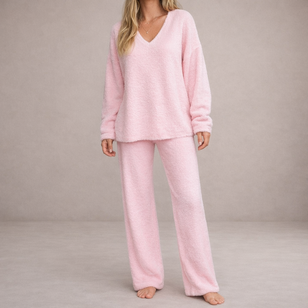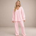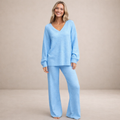 Women’s Two-Piece Knit Lounge Set with V-Neck Top