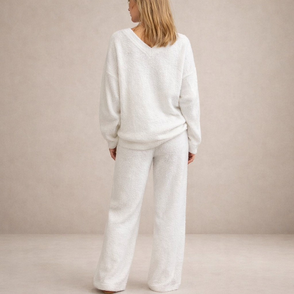 This soft two-piece knit outfit offers effortless elegance with a relaxed, contemporary feel. Designed for comfort-led styling, it’s ideal for casual days, travel or refined lounging with a polished finish.