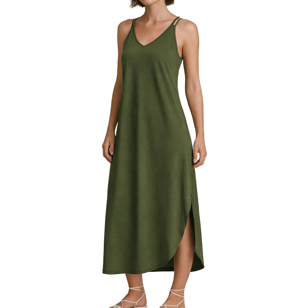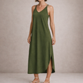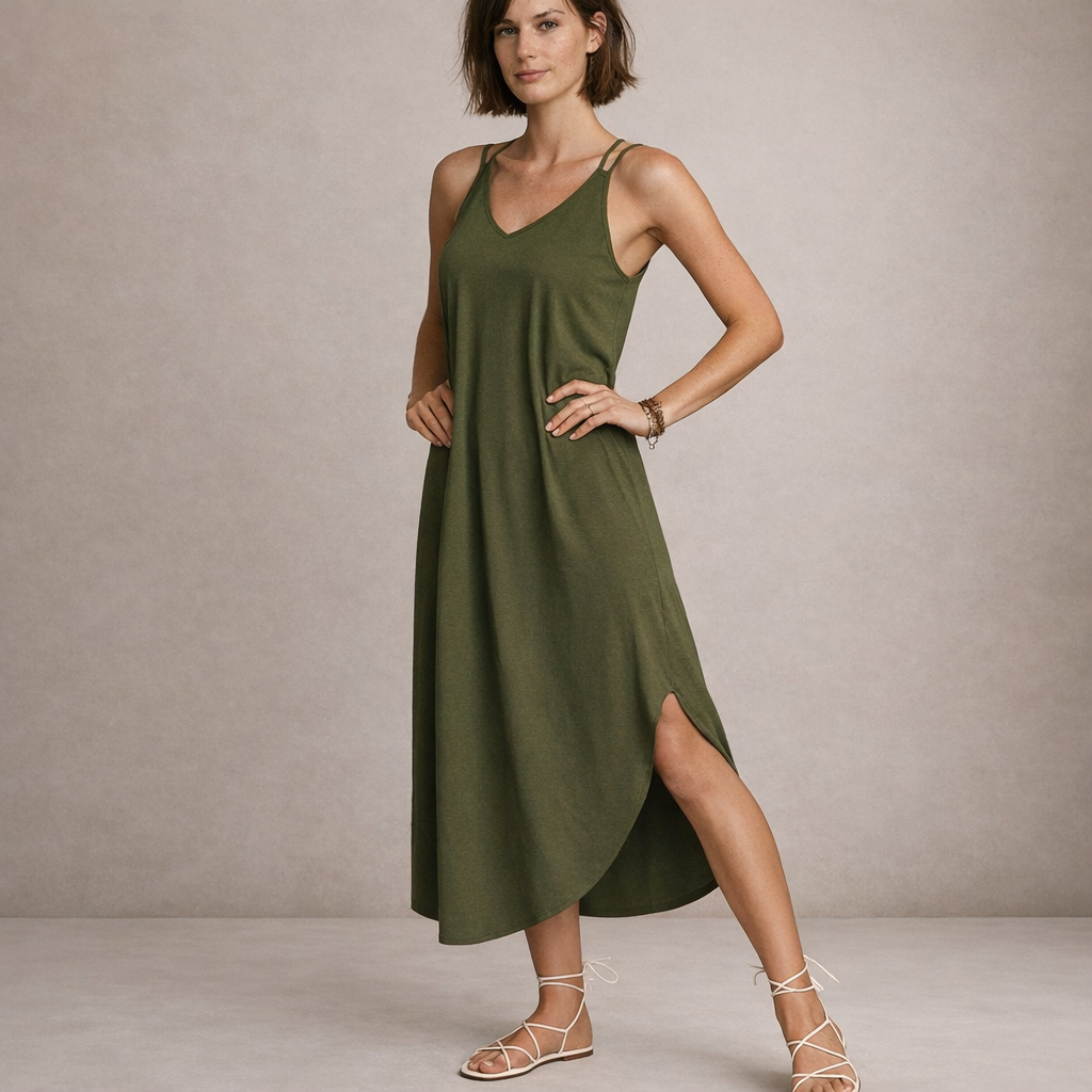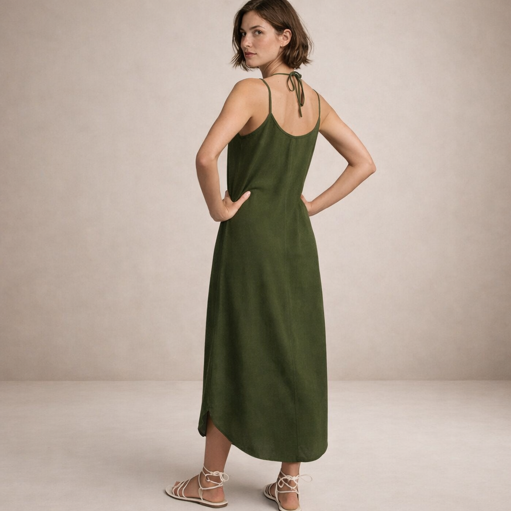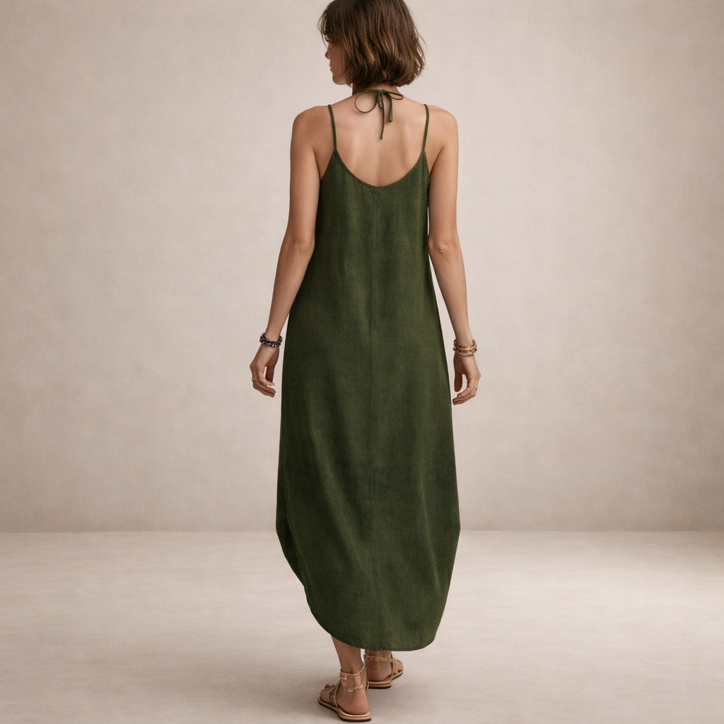 This women’s sleeveless maxi dress offers a clean, understated silhouette with an elegant, relaxed feel. Designed for warm days and effortless dressing, it transitions seamlessly from casual daytime wear to refined evening occasions with simple styling changes.