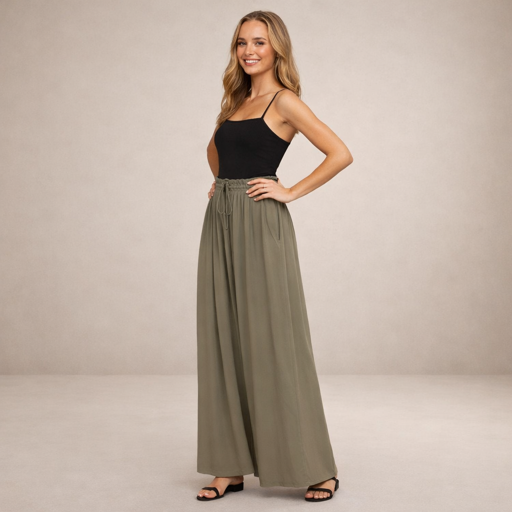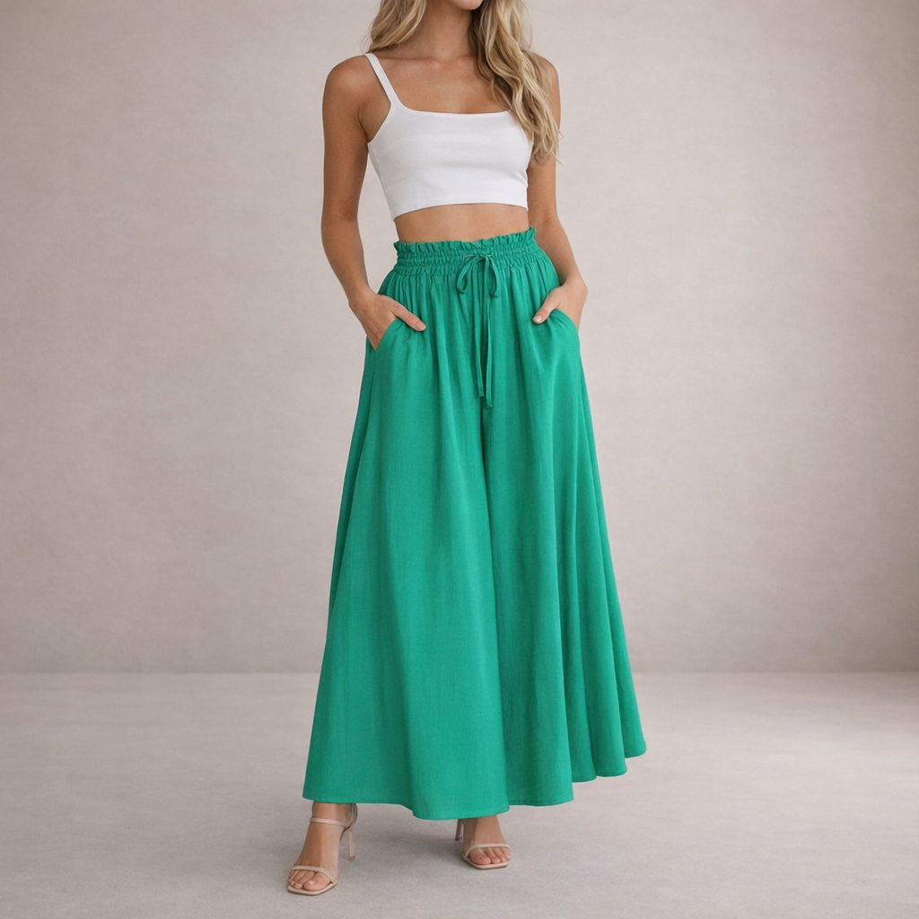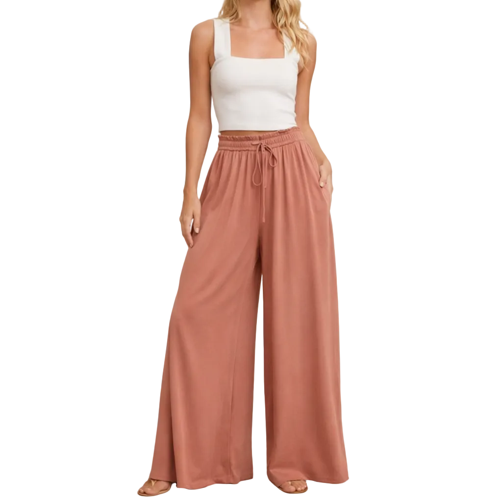 Key features of this Women’s Wide Leg Trousers with Elasticated Drawstring Waist